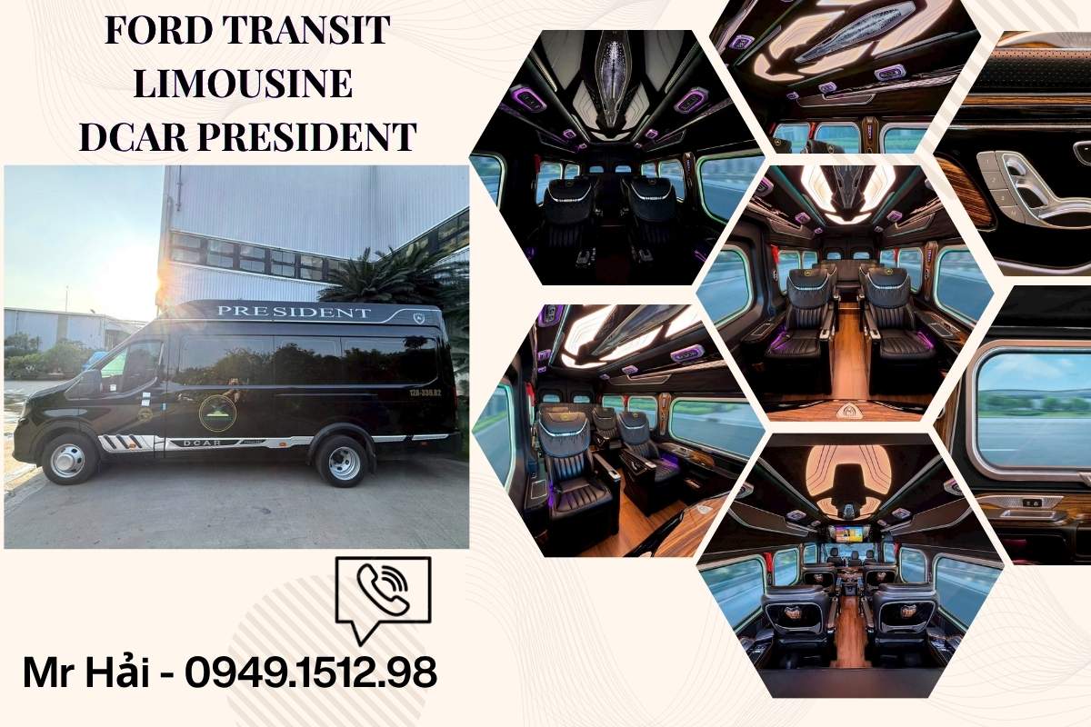 Trong phân khúc xe vận chuyển cao cấp tại Việt Nam, cái tên Ford Transit Limousine – Dcar President từ lâu đã trở thành một tiêu chuẩn vàng, một biểu tượng của sự sang trọng và quyền uy. Đây không đơn thuần là một phương tiện di chuyển, mà là một tác phẩm nghệ thuật cơ khí được cá nhân hóa để phục vụ những vị chủ nhân khắt khe nhất.