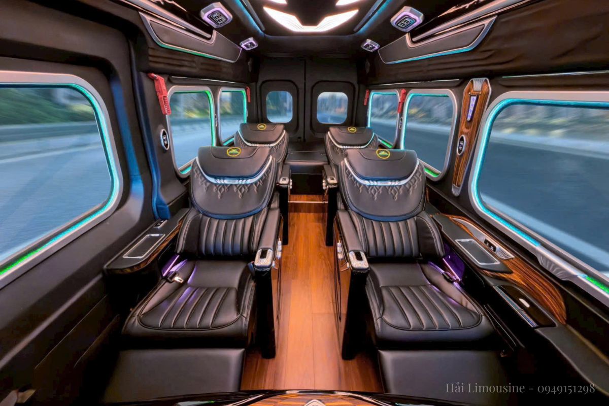 Cách âm và Chống rung: Toàn bộ sàn xe được lót vật liệu cách âm 3 lớp, kết hợp cùng hệ thống treo khí nén (tùy chọn) giúp xe lướt đi êm ái như một chiếc du thuyền trên mặt nước phẳng lặng.