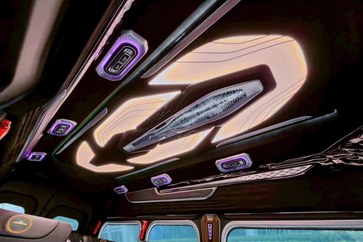 Không gian trần xe: Ford Transit có chiều cao lý tưởng, cho phép lắp đặt hệ thống trần 3D cầu kỳ mà không làm người ngồi cảm thấy bị “đè nén”.