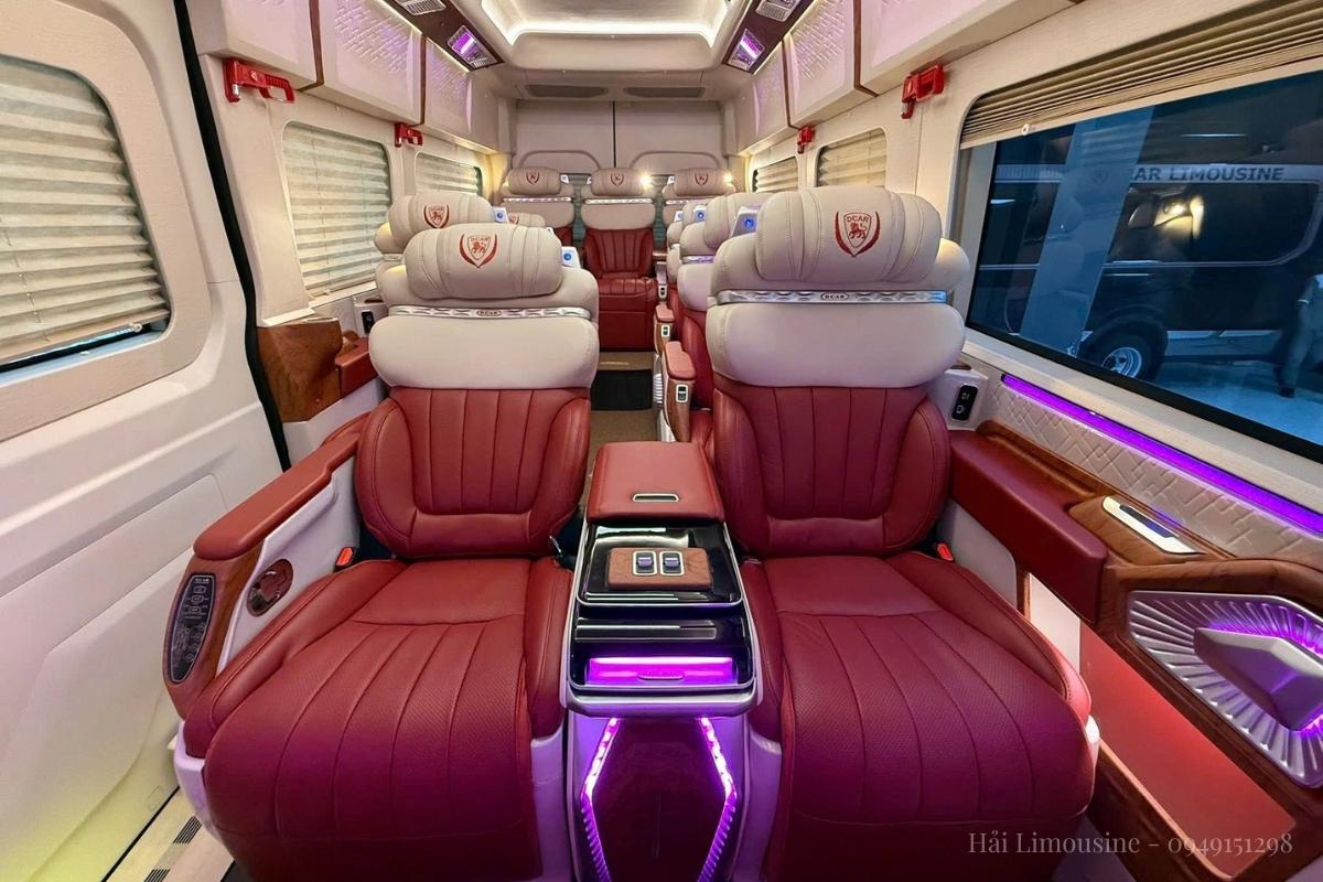 Một trong những điểm “ăn tiền” nhất của Ford Transit Limousine – Dcar President chính là hàng ghế sau có thể ngả phẳng 180 độ. Đây là một kỳ công về kỹ thuật sắp đặt không gian. Khi cần thiết, ba ghế sau cùng sẽ kết nối lại thành một chiếc giường đôi rộng rãi, cho phép chủ nhân chợp mắt nghỉ ngơi trên đường ra sân bay hoặc trong những chuyến công tác liên tỉnh dài ngày.
