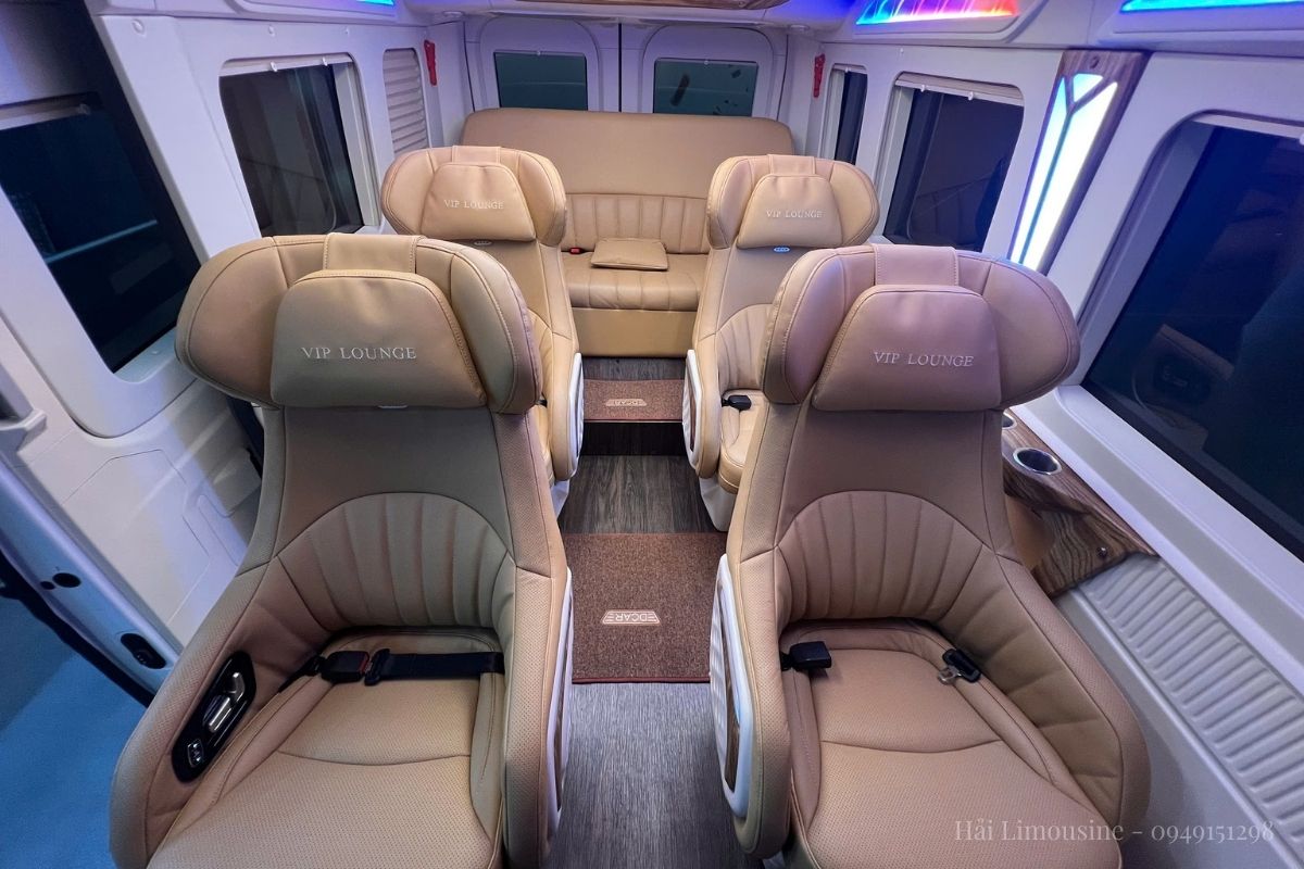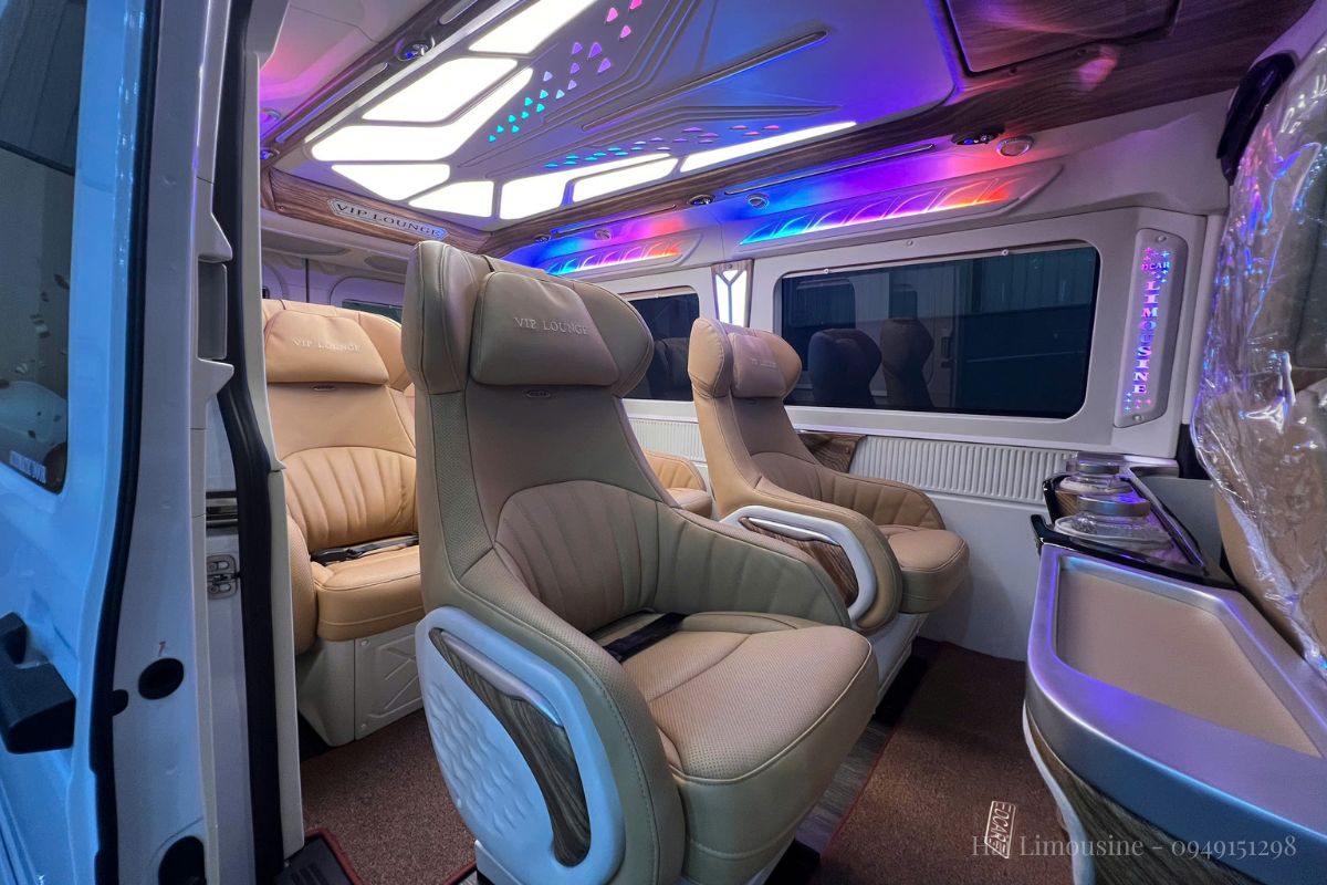 Phiên bản VIP Lounge không chỉ đơn thuần là rút gọn số ghế, mà là một cuộc cách mạng về không gian kiến trúc bên trong cabin. Với cấu hình 10 chỗ (9 ghế hành khách + 1 ghế lái), xe tạo ra một khoảng không gian cực kỳ rộng rãi, cho phép tích hợp các công nghệ thư giãn hàng đầu thế giới.